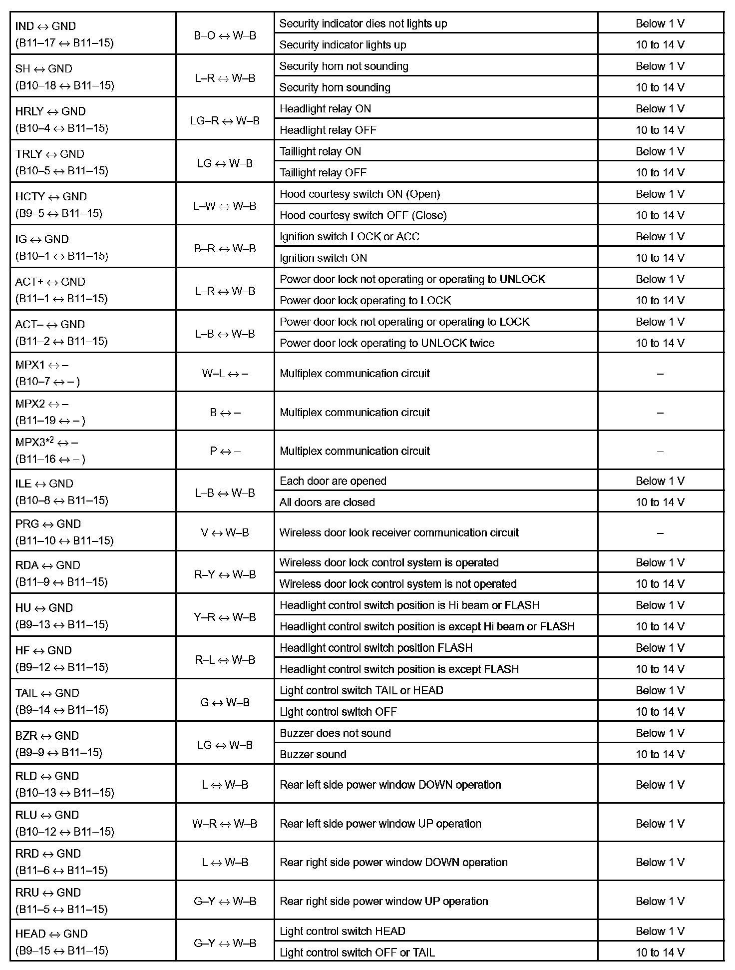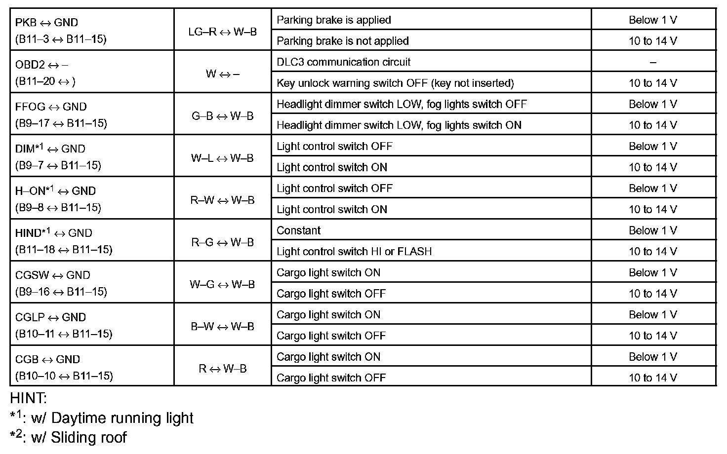 Pinout Values and Diagnostic Parameters