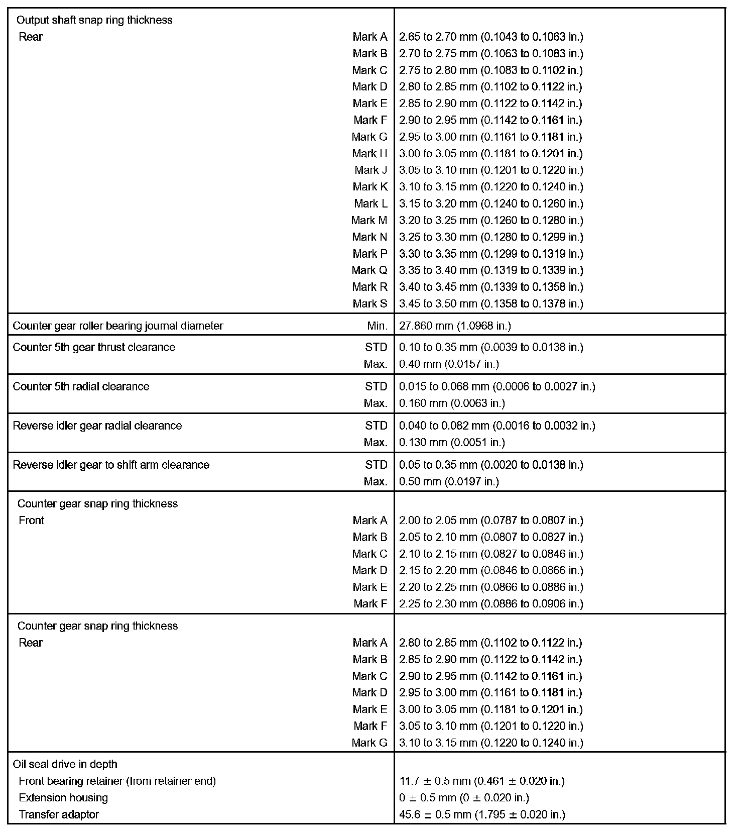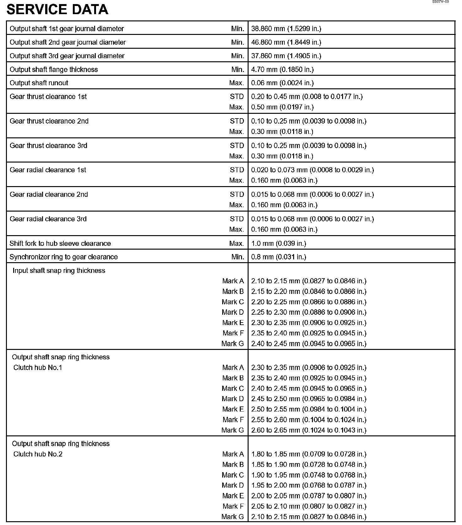 Manual Transmission - Service Data Part 2: