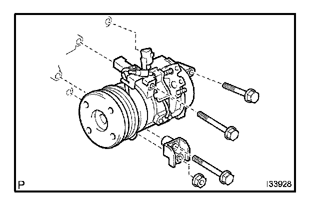 a. Install the compressor and magnetic clutch and stay, compressor with the 3 bolts.