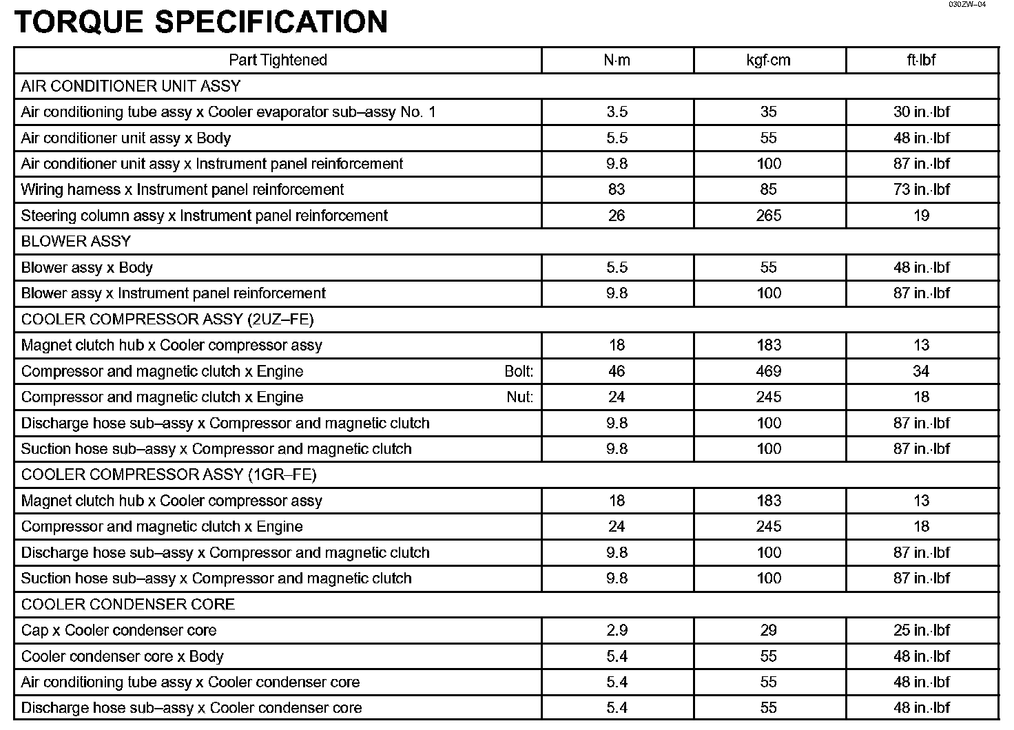 Heater And Air Conditioning - Torque Specification: