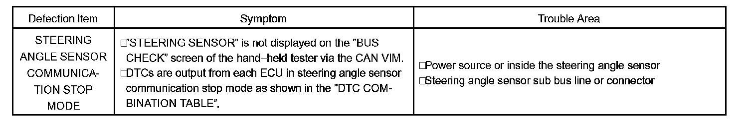 STEERING ANGLE SENSOR COMMUNICATION STOP MODE
