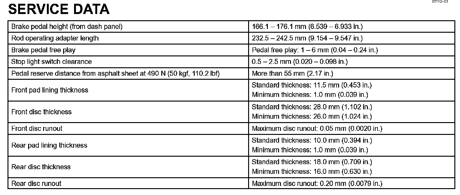 Brake - Service Data:
