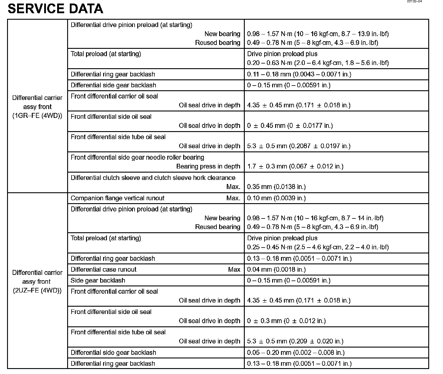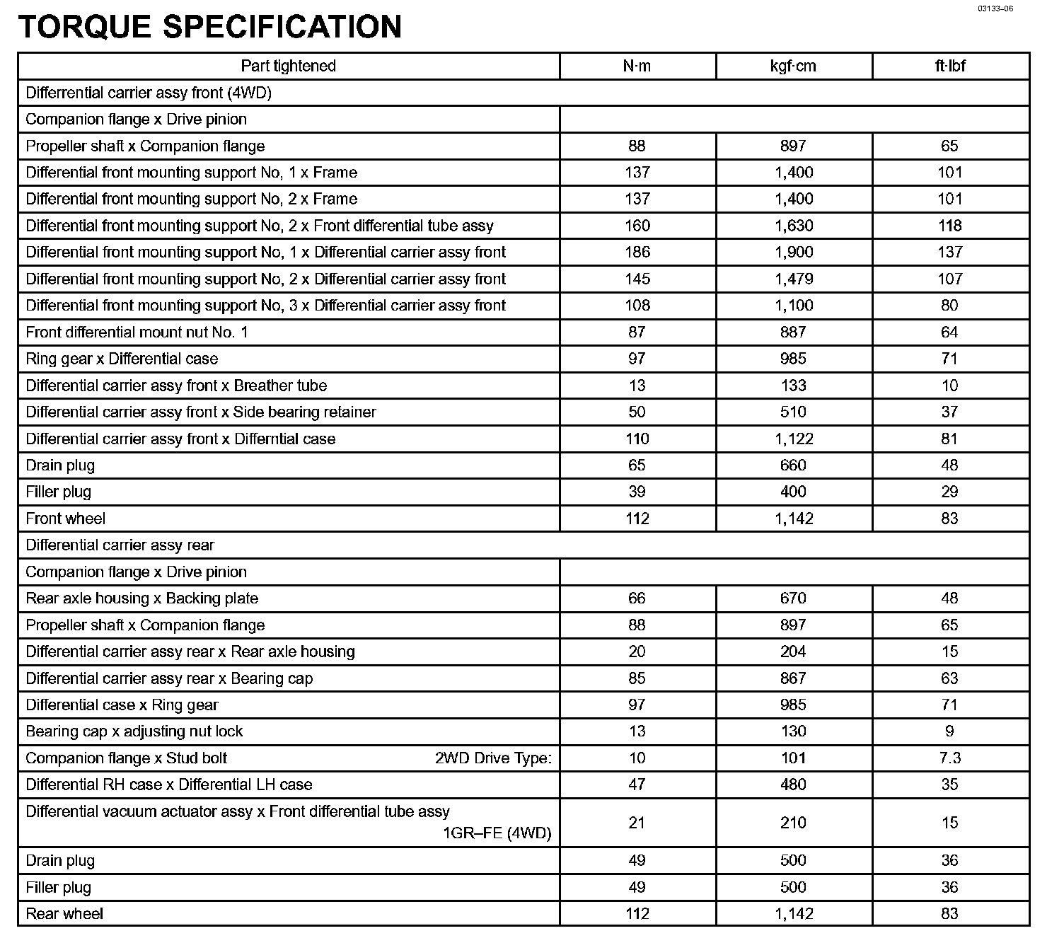 Differential - Torque Specification: