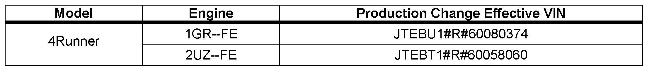 - 2005 - 2006 model year 4Runner vehicles produced BEFORE the Production Change Effective VINs shown below.