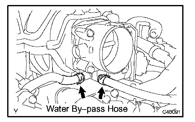 a. Disconnect the 2 water by-pass hoses from the throttle body.