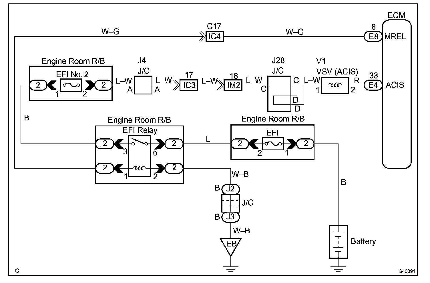 This circuit opens and closes the Intake Air Control Valve (IACV) in response to the engine load in order to increase the intake efficiency (ACIS: Acoustic Control Induction System).