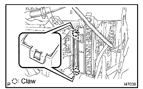 b. Disengage the 2 claws and remove the ECU aggregation cover No.2.