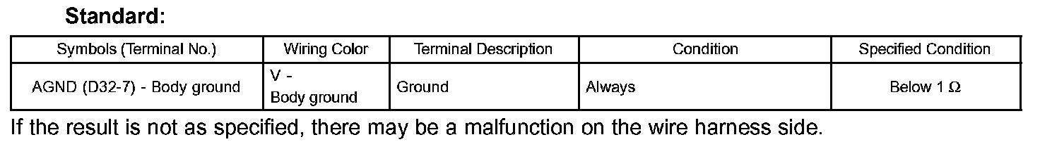 b. Measure the voltage and resistance between each terminal of the wire harness side connectors and body ground.