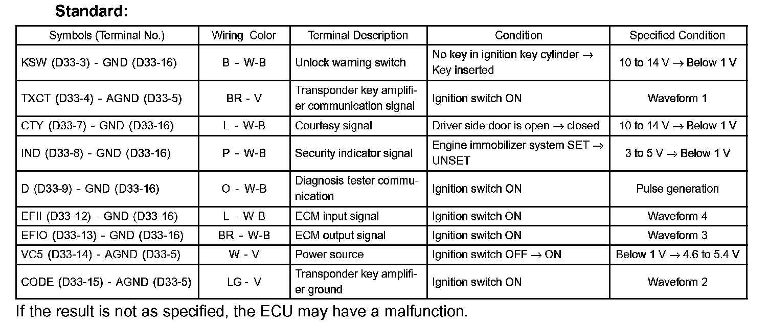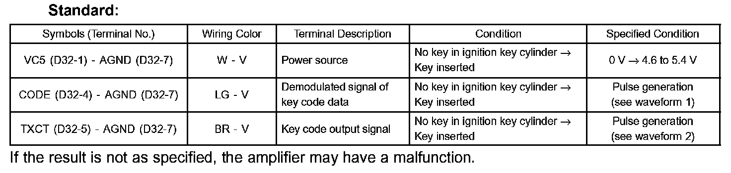TERMINALS OF ECU1. CHECK TRANSPONDER KEY AMPLIFIER