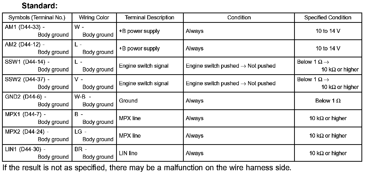 b. Measure the resistance and voltage of the wire harness side connector.