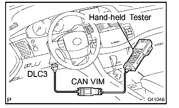 HINT: Connect the cable of the hand-held tester to the DLC3, turn the engine switch on (IG) and attempt to use the hand-held tester. If the screen displays a communication error message, a problem may be on the vehicle side or tester side.