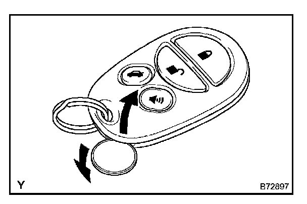 c. Using a screwdriver, remove the transmitter's battery from the key, as shown in the illustration.