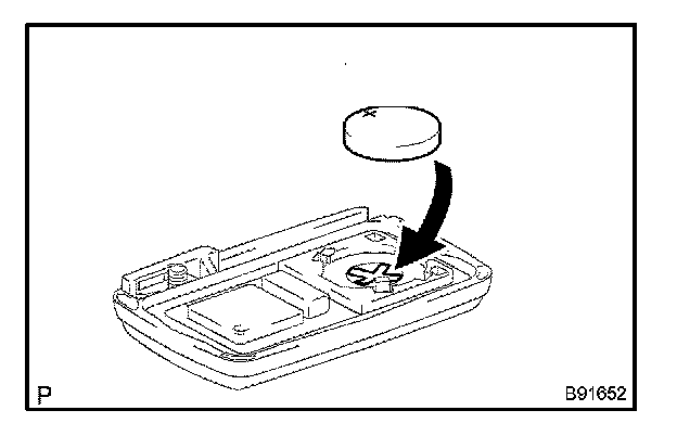 a. Install a new battery (lithium battery) with the positive (+) side up as shown in the illustration.