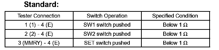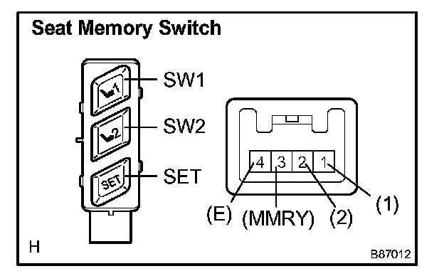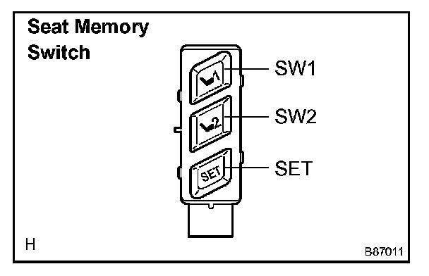 k. After the SW1 and SW2 switches are pressed together while the SET switch is held down check that the seat does not move (the seat position is not recorded) when the SW1 or SW2 switches is pressed.
