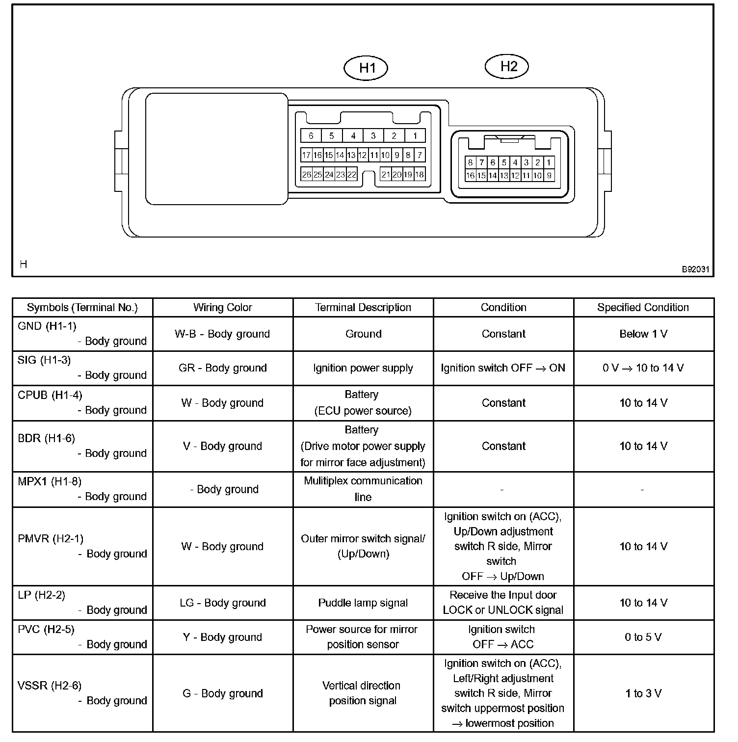 Terminals Of Control Module/Pinouts - Memory Mirror ECU (RH) Part 2: