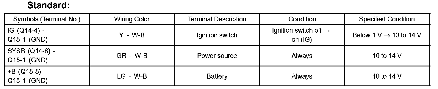 b. Check the voltage of each terminal of the wire harness side connectors.