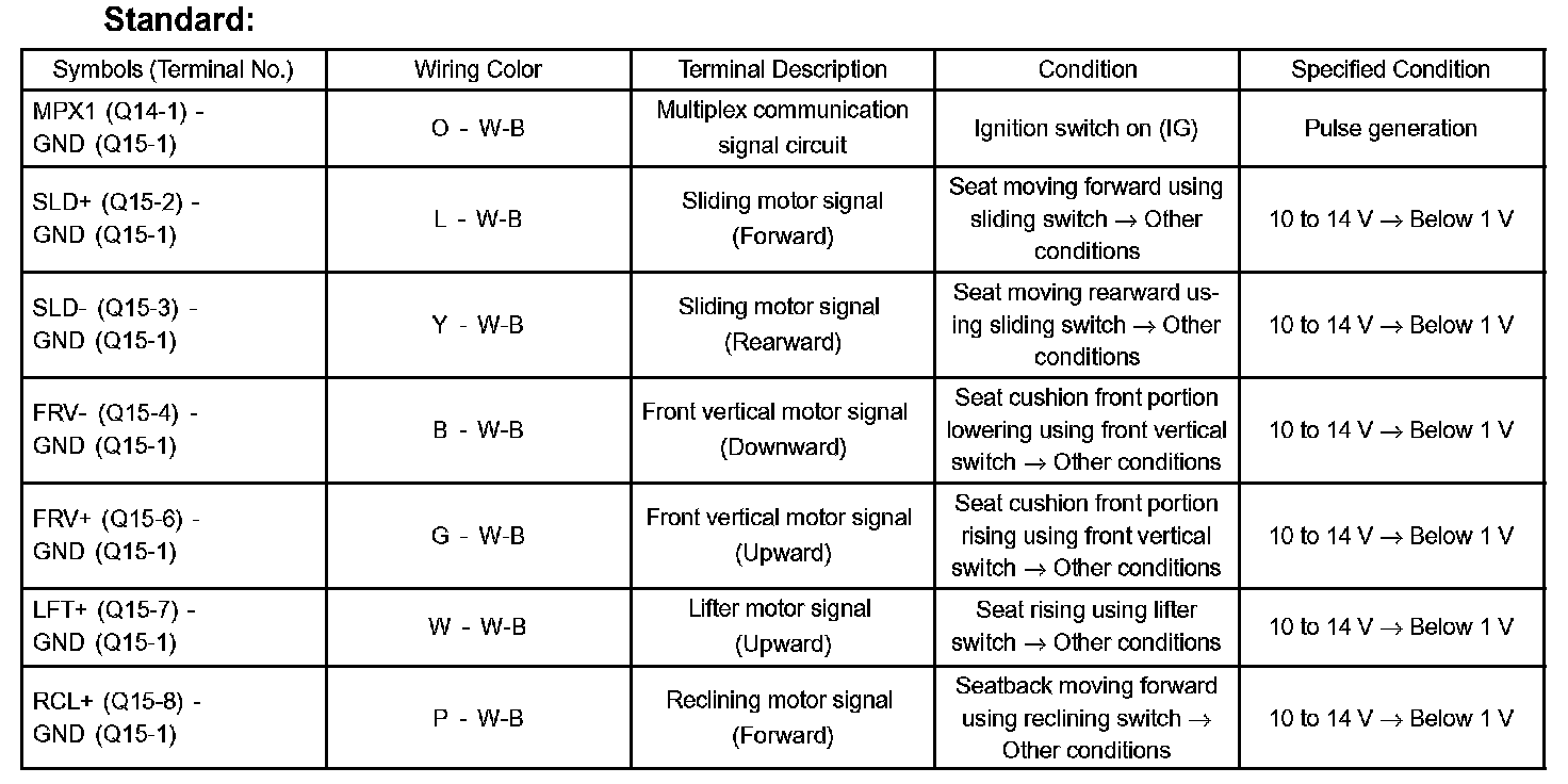 TERMINALS OF ECU1. POSITION CONTROL ECU & SWITCH ASSEMBLY (POWER SEAT CONTROL ECU)