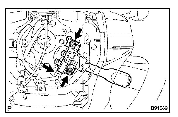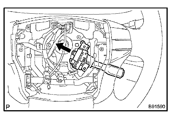 c. Pull out the cruise control main switch assembly in the direction shown by the arrow in the illustration.