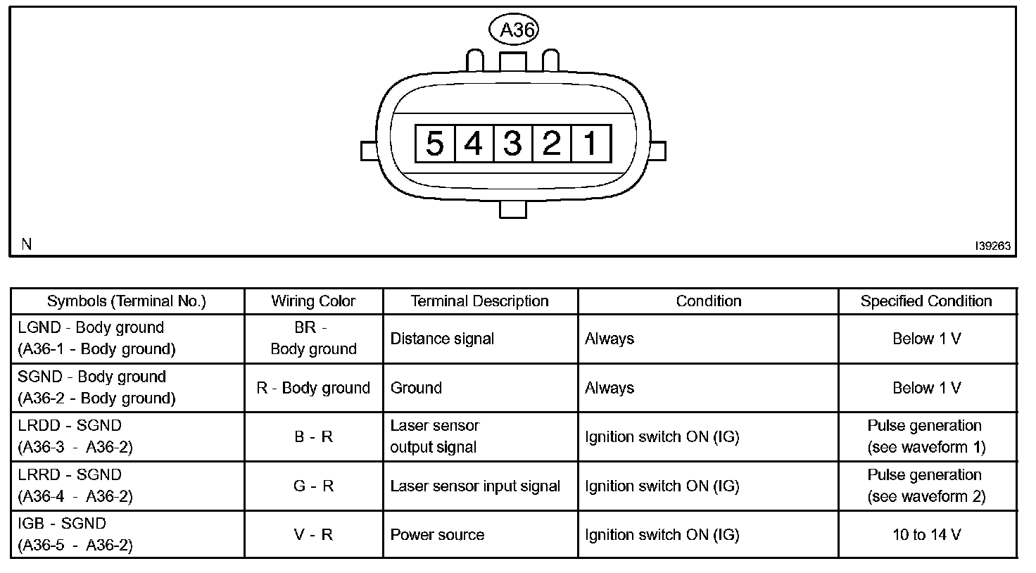 Terminals Of Control Module/Pinouts - Laser Sensor: