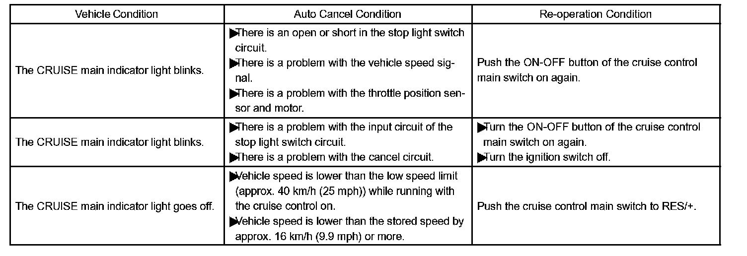 is in operation, the system clears the stored vehicle speed in the ECM and cancels the cruise control operation.