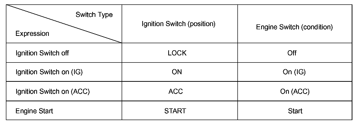 The type of ignition switch used on this model differs according to the specifications of the vehicle.