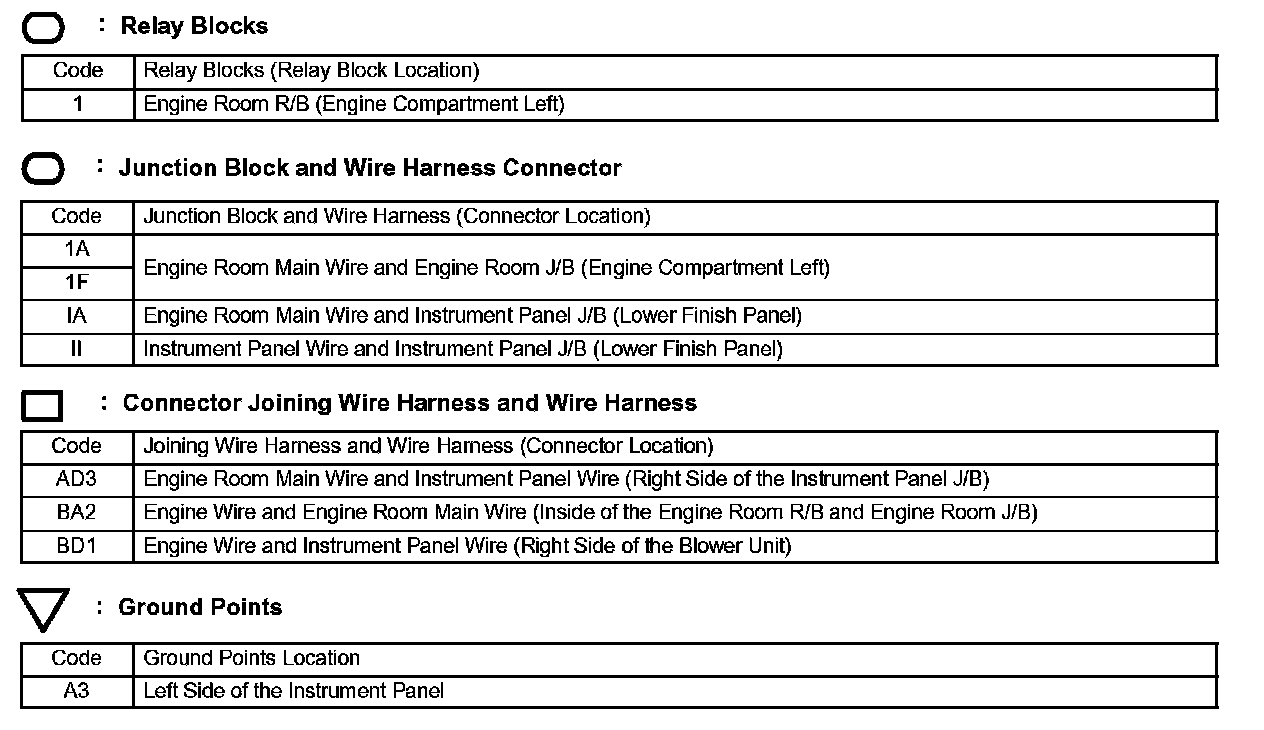 Locations: The locations of components, connectors, ground points, and splices referred to within these diagrams can be found at Vehicle Locations. Locations