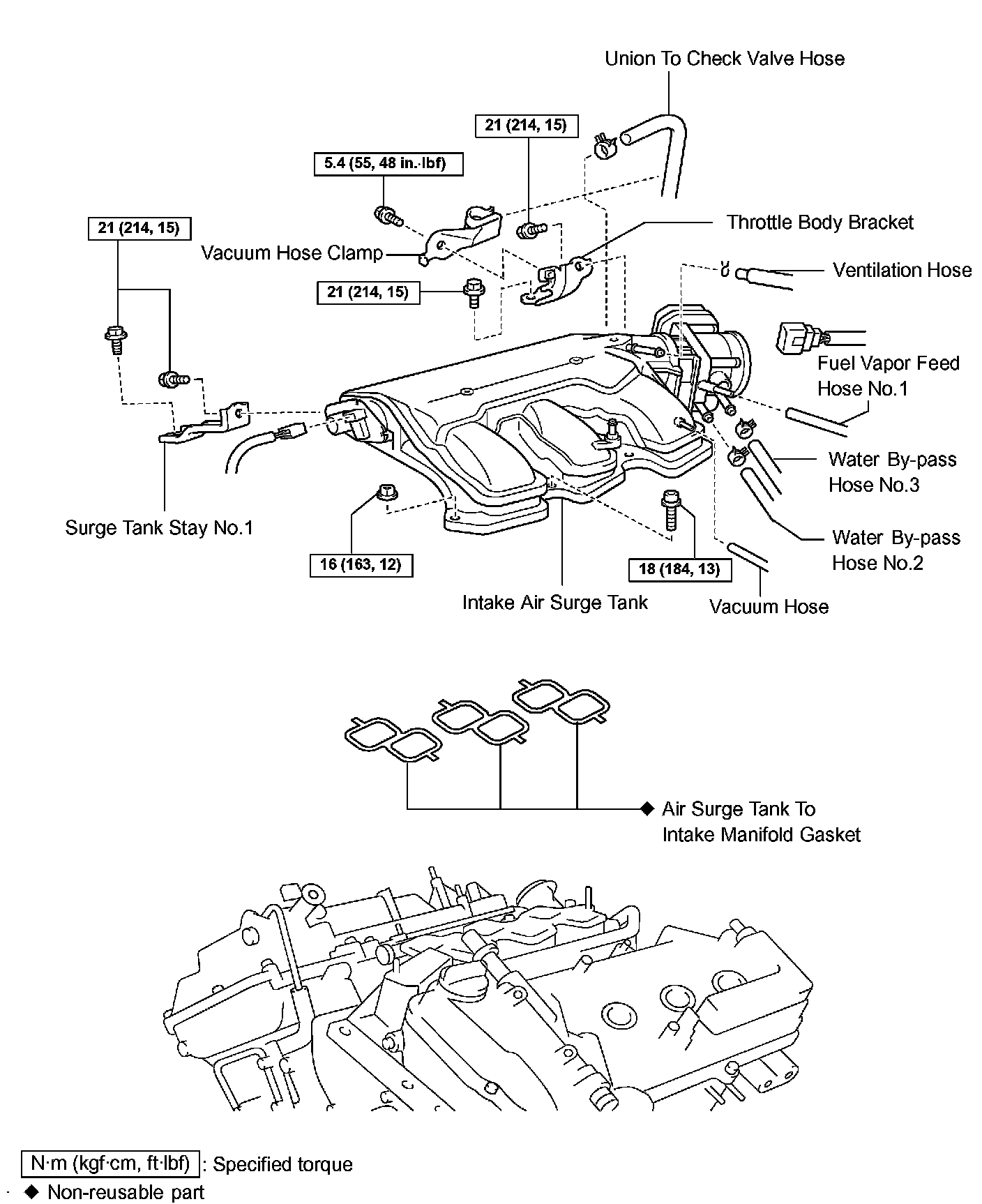 21 Nm (214 kgf-cm, 15 ft. lbs.) for bolts except A