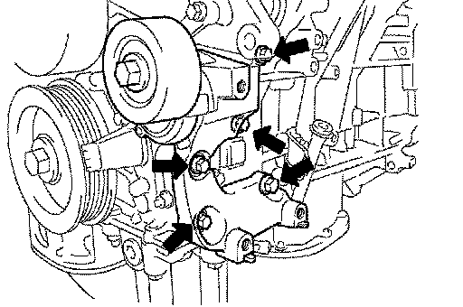 a. Temporarily install the V-ribbed belt tensioner with the 5 bolts.