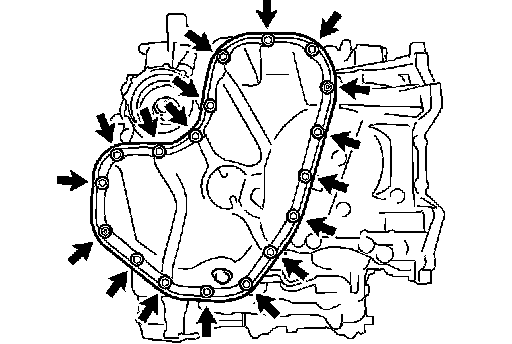 c. Install the oil pan No.2 with the 16 bolts and 2 nuts.