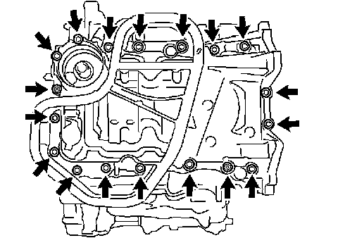 d. Install the oil pan with the 16 bolts and 2 nuts.