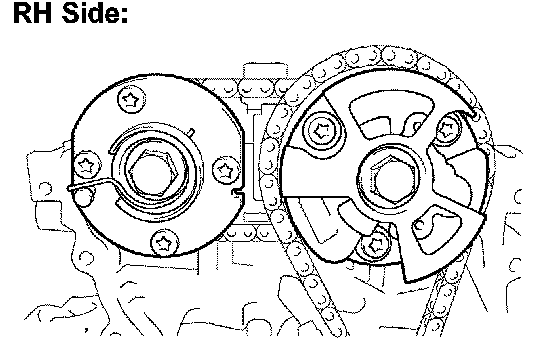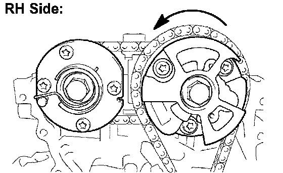 b. Turn the camshaft timing gear assembly on the RH bank counterclockwise to tighten the chain between banks.
