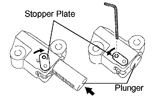 a. Move the stopper plate upward to release the lock, and push the plunger deep into the tensioner.