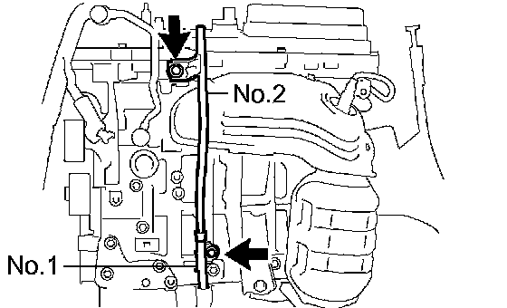 b. Remove the bolt and pull out the oil level gauge guides No.1 and No.2.