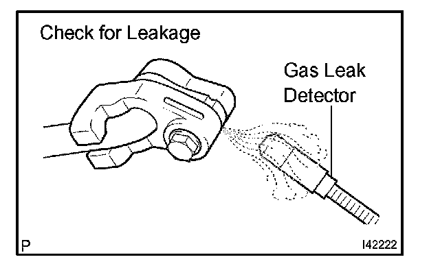 c. Using a gas leak detector, check for leakage of the refrigerant line.