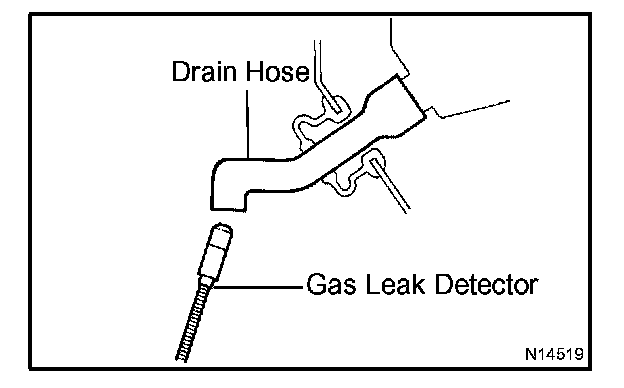 - When bringing the gas leak detector close to the drain hose, make sure that the gas leak detector does not react to volatile gases.