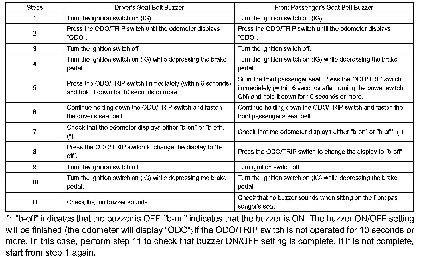 NOTE: Basically, these buzzers should be set on for safe driving. However, perform the following procedures only if it is necessary to set the buzzer off.