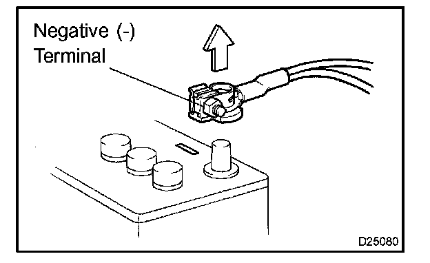 a. Before performing electronic work, disconnect the battery negative (-) terminal in order to prevent a short in the system.