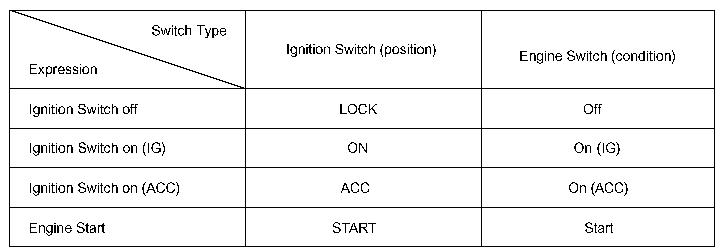 The type of ignition switch used on this model differs according to the specifications of the vehicle.