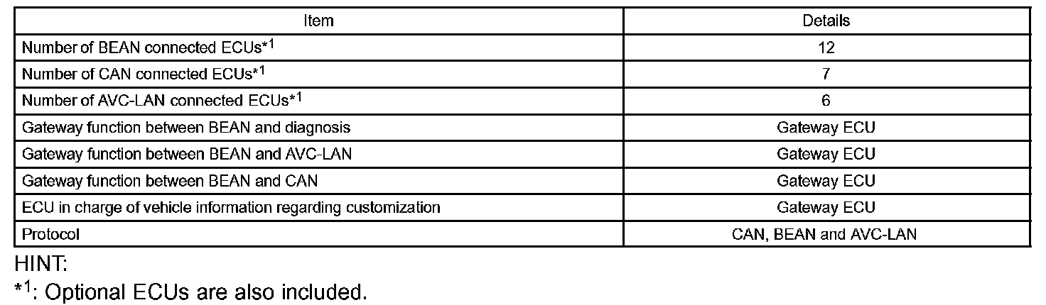 Protocols, which are rules for establishing data communication, differ between the CAN, BEAN and the AVC-LAN. If ECUs use different types of data such as communication speed, communication wire, and signals, they will be unable to communicate with each other. Therefore, protocols (rules) must be established among them.