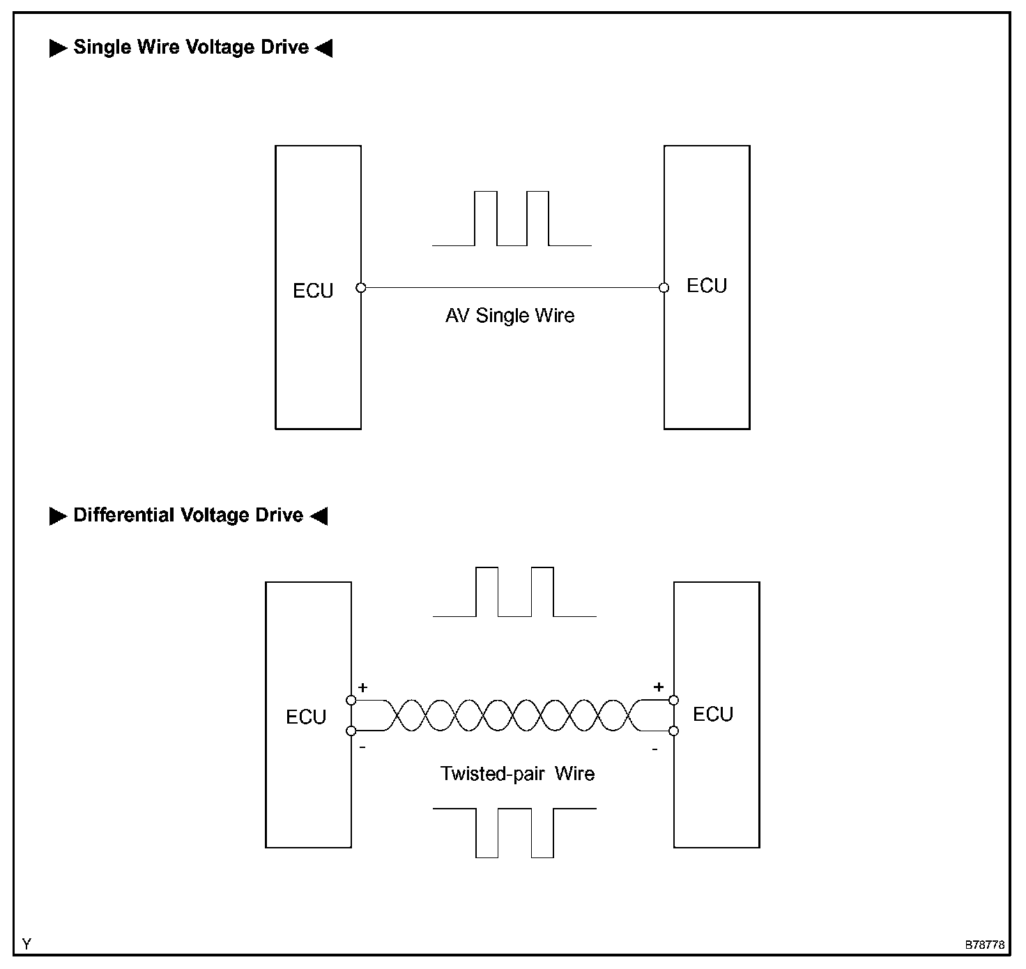 A single, Automobile Vinyl (AV) wire is used for BEAN communication. A twisted-pair wire is used for CAN and AVC-LAN communication.