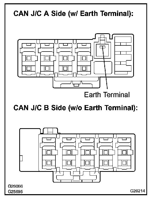 a. CAN J/C A side (w/ earth terminal) and CAN J/C B side (w/o earth terminal):