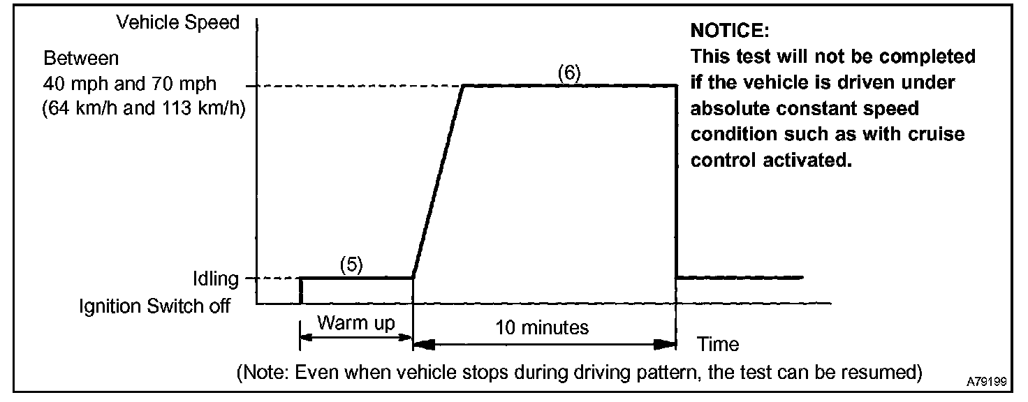 6. Drive the vehicle at between 40 mph and 70 mph (64 km/h and 113 km/h) for at least 10 minutes.