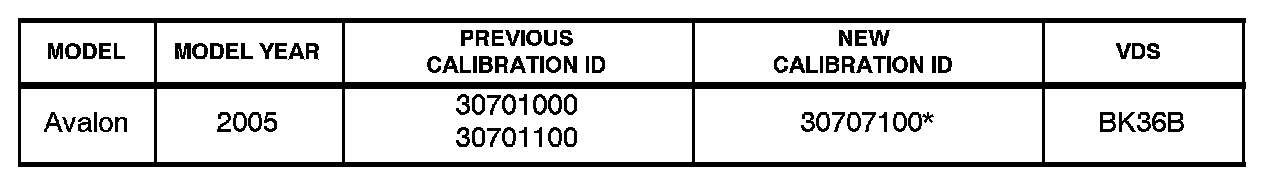 ^ Calibration ID(s): [Refer to the Calibration Identification Chart for the NEW CALIBRATION ID]