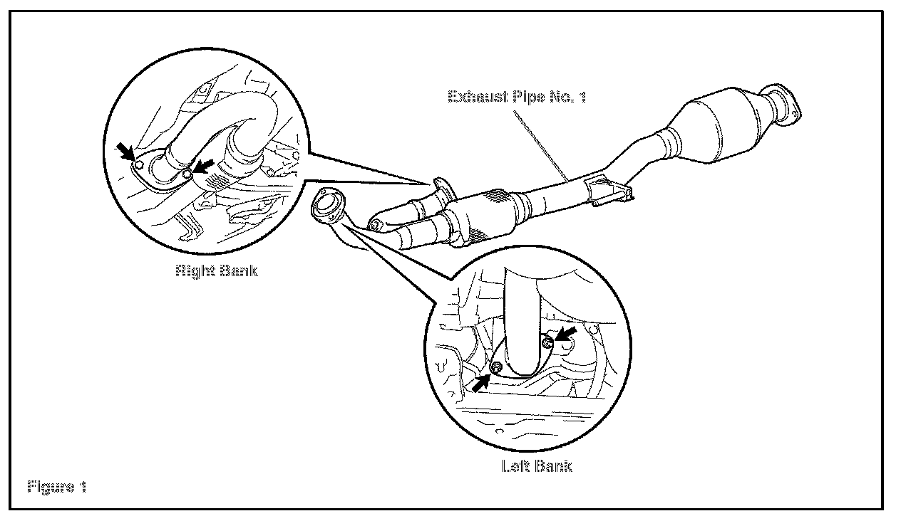 1. Disconnect the bank 1 and bank 2 front pipe assembly from the exhaust manifolds.