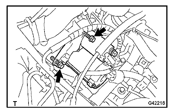 c. Remove the 2 bolts and the starter assembly.