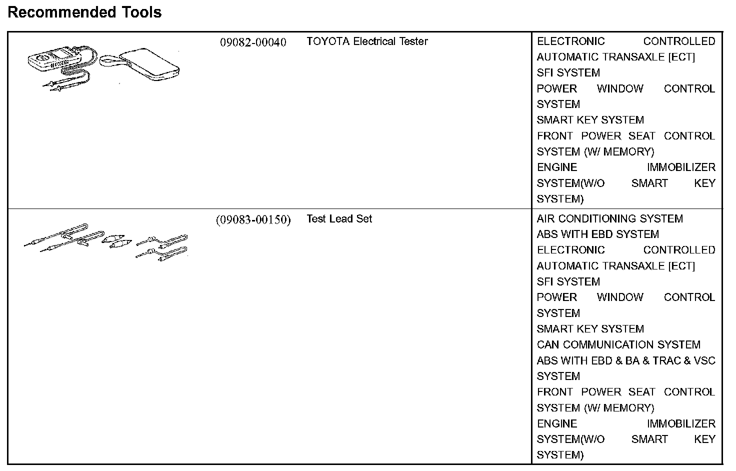 Diagnostics - Recommended Tools: