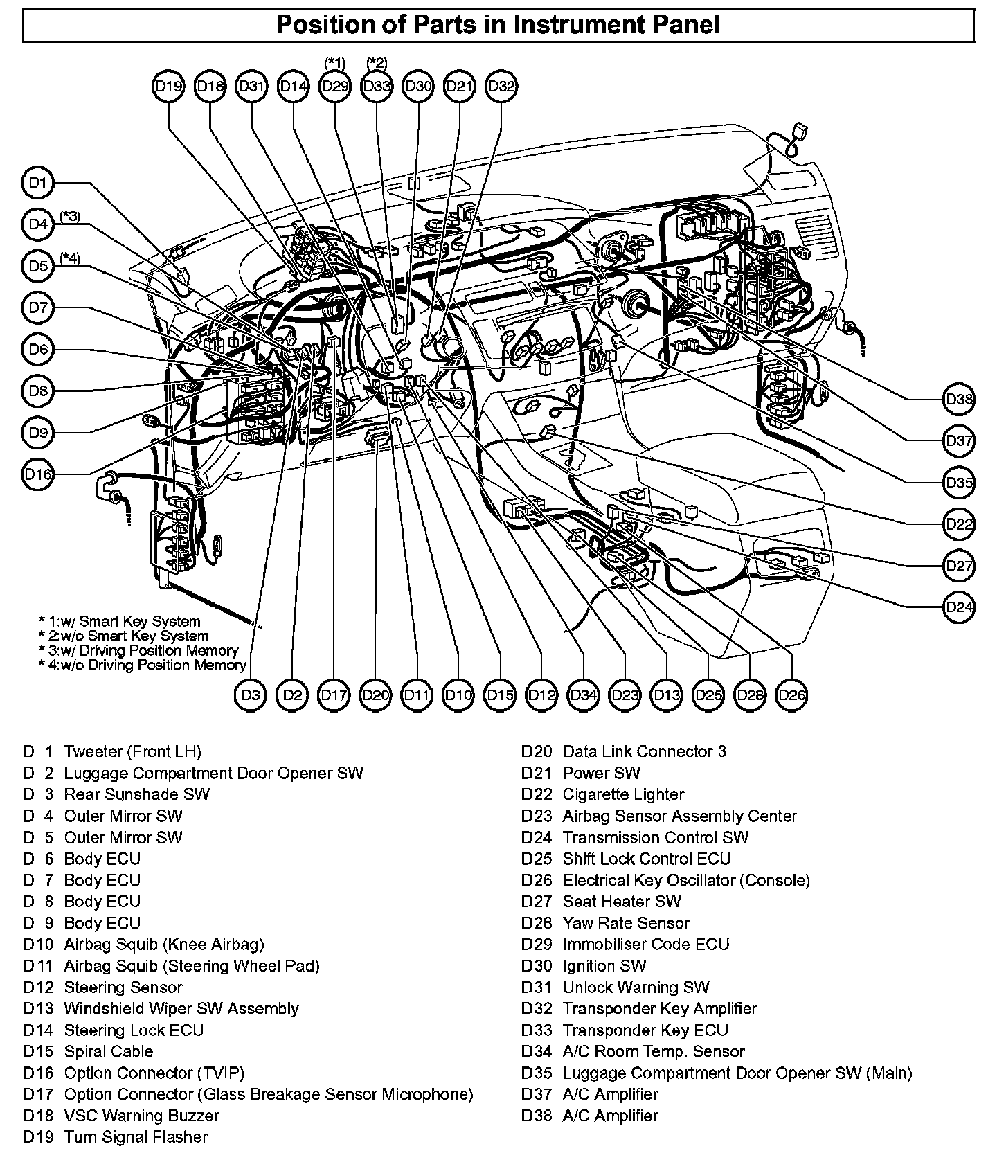 Position of Parts In Instrument Panel: