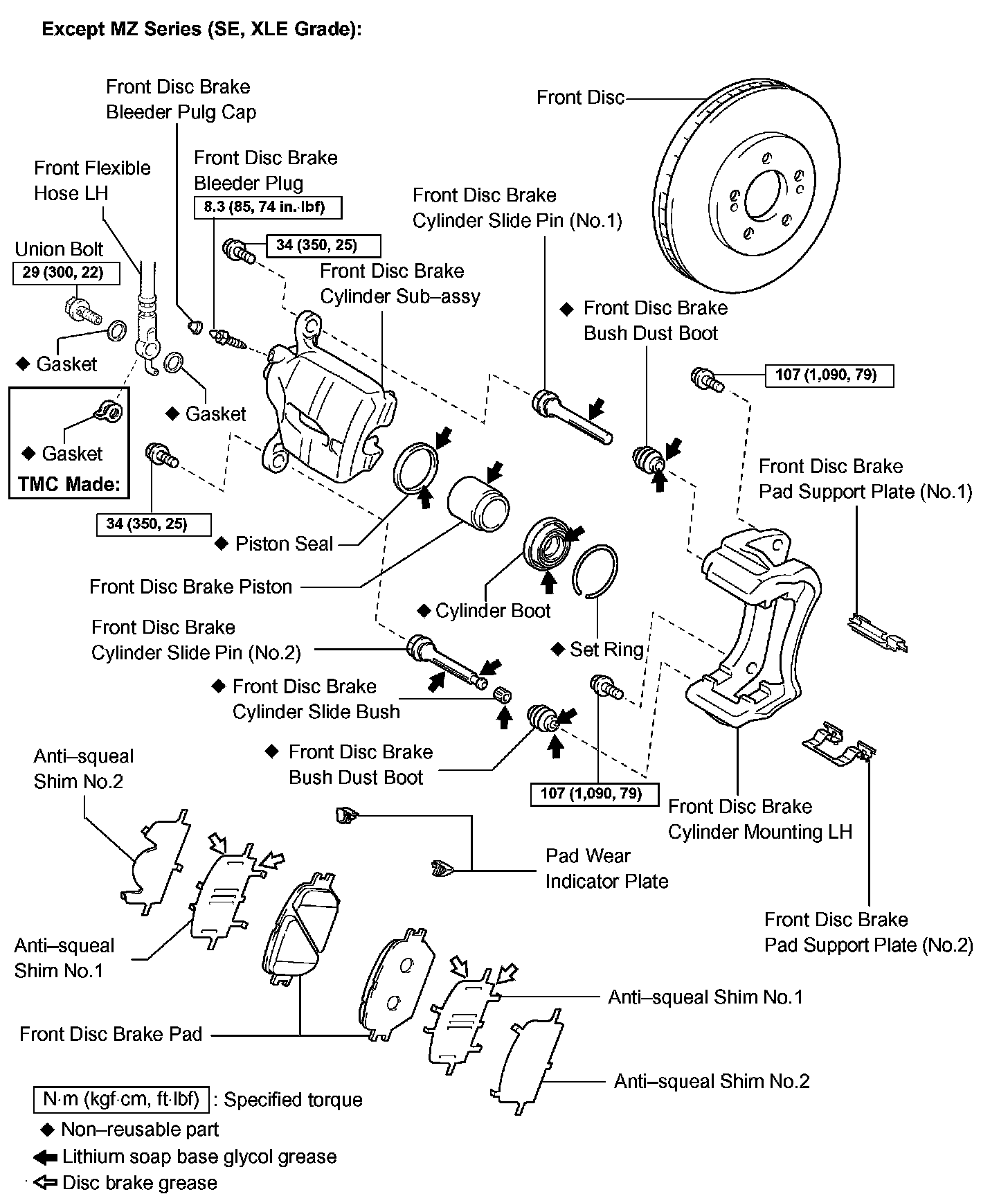a. MZ Series (SE, XLE Grade): Remove the 2 anti-squeal shims from each pad.