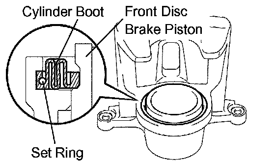 a. Apply lithium soap base glycol grease to the front disc brake piston and new cylinder boot.