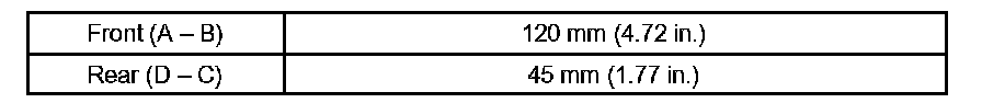 h. Check the camber. If the measured value is not within the specified range, calculate the required adjustment amount using the formula below. (Camber adjustment amount) = Center of the specified range - Measured value